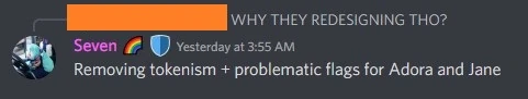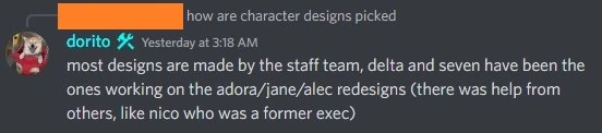 - Although Alec, Adora, and Jane had possible (not entirely final) redesigns[1] by toraisecain and Unlucky_Seven[2], they were removed indefinitely[3] for tokenism problems in their outfits.